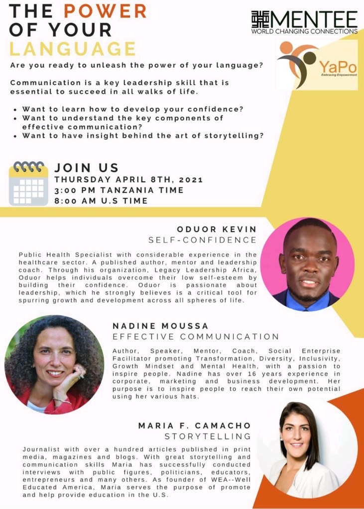 YAPO is committed to raising a generation of young people who leave a lasting legacy in their leadership endeavors. Recognizing the need to impart its network of young people with requisite relevant skills in leadership, YAPO organized a mentorship session and invited MENTEE Global, an organization in the USA dealing with mentorship. Since I am a volunteer at this organization, I joined my other colleges at MENTEE Global in training YAPO network of young people on a wide range of topics including self confidence, personal development, human impact stories among others.