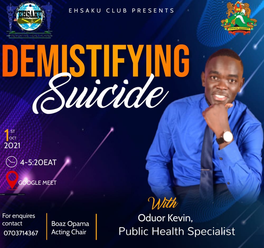 In keeping with this increased number of suicide cases, Environmental Health Students Association of Kenyatta University (EHSAKU) hosted a webinar to demystify suicide while creating the much-needed awareness on the same. I am profoundly delighted to have been invited to give a Keynote Presentation on Suicide as a Non-Communicable Diseases.