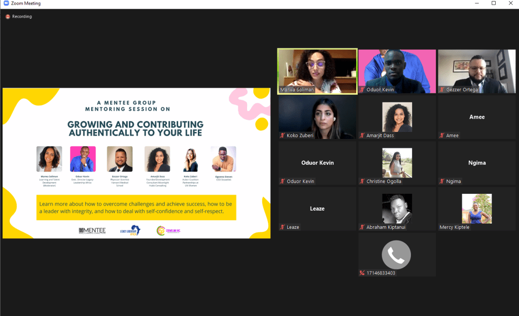 In keeping with the aforementioned, I actively participated in the organizing a mentorship session dubbed “Growing and Contributing Authentically to Your Life.” Hosted by Legacy Leadership Africa and US based organization —Mentee Global Organization, this mentorship session was to equip young people with skills and knowledge on how to meaningfully contribute in their lives and the lives of others. With mentors from Mentee Global, the participants were introduced to a deeper understanding of a wide range of topics covering personal development, leadership integrity and self-confidence among others.