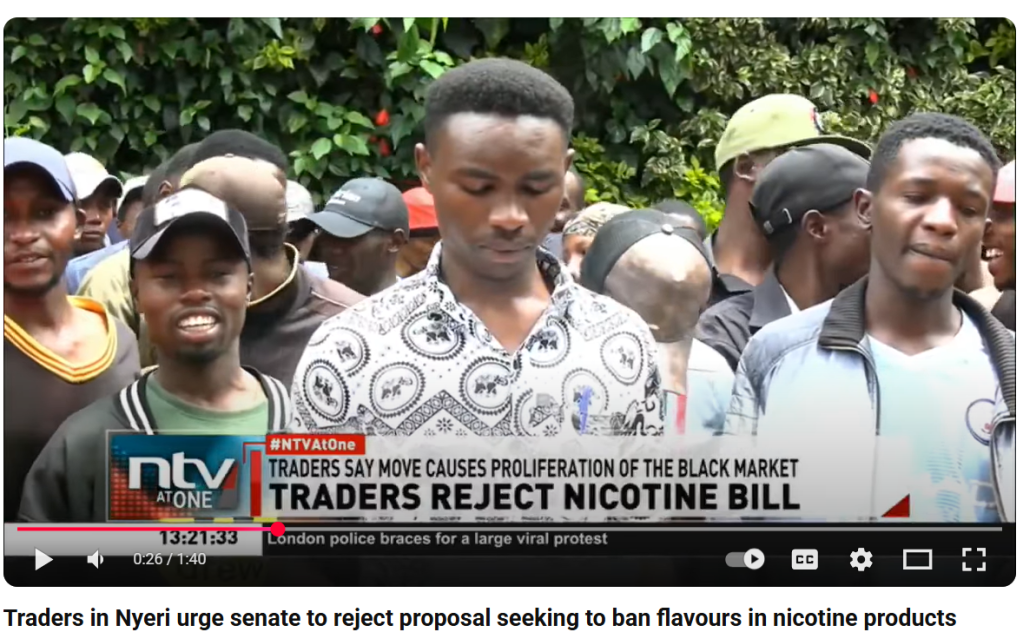 On September 10th, 2025, one of the leading TV stations in Kenya, NTV, aired a segment featuring a group of traders in Nyeri urging the Senate to reject a key provision in the Tobacco Control (Amendment) Bill, 2024. In their argument, they claim that imposing a ban on flavoured nicotine products including vapes and pouches would result in devastating impact including proliferation of illicit trade and interference with livelihoods of small traders. This reaction, while appearing to be grassroot, bears the unmistakable footprints of the tobacco industry’s interference playbook. Under the Tobacco Industry Interference Digital Watch Initiative (TIIDWI), we have been tracking, exposing, countering and documenting cases such as these. This marks our ninth article in the series, and once again, the tactics are familiar: mobilize proxies, manufacture public dissent, and derail progressive legislation.